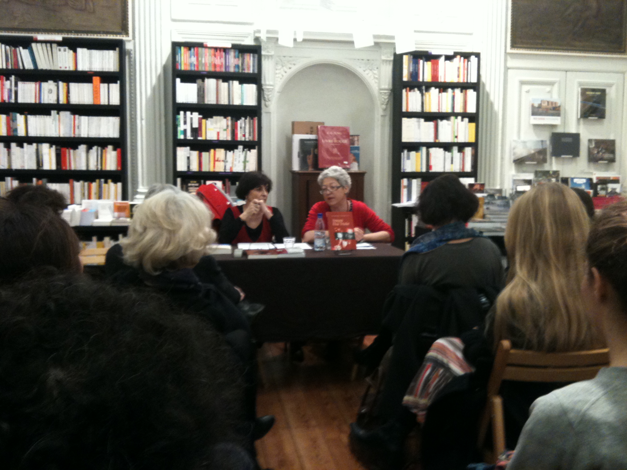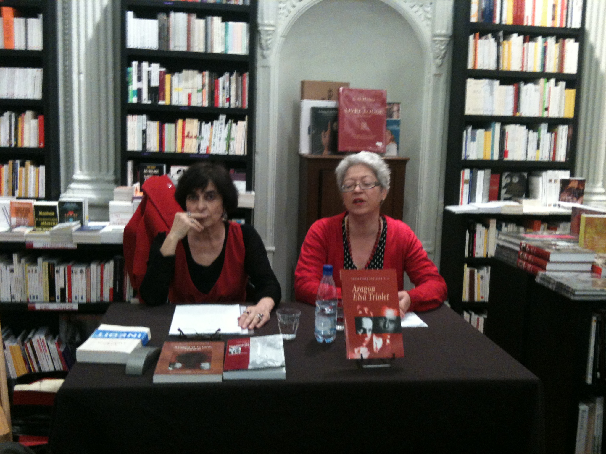 Roselyne Waller et Corinne Grenouillet présentent la recherche aragonienne à la librairie Quai des Brumes, Strasbourg, le 20 mars 2012