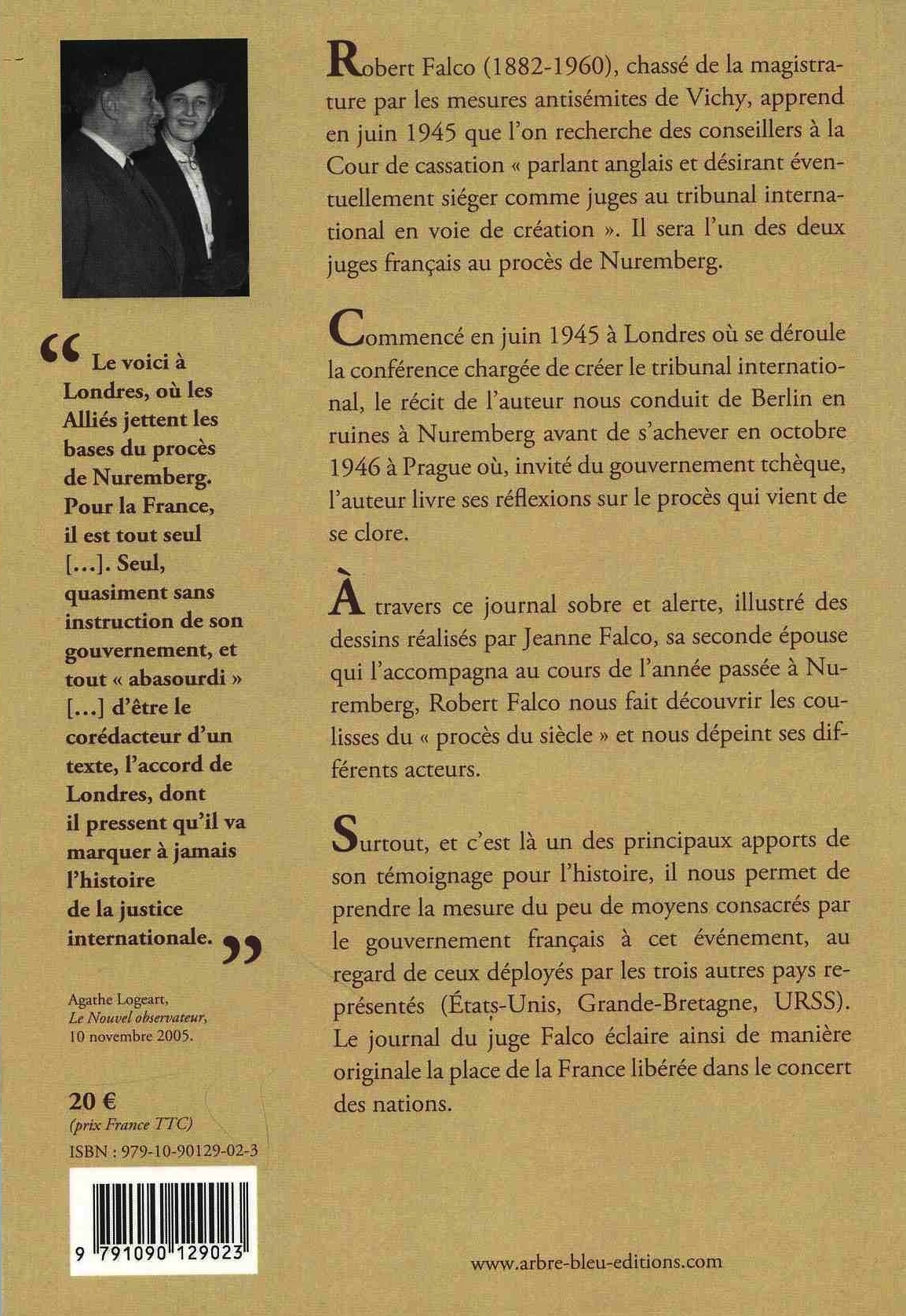 Robert Falco, Juge à Nuremberg. Souvenirs inédits du procès des criminels nazis, Illustrations de Jeanne Falco, Préface d’Annette Wievorka, Introduction de Guillaume Mouralis, Historien, Chargé de recherches au CNRS, Nancy, Éditions Arbre bleu, 2012