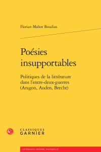 Compte rendu par Roselyne Waller, de Florian Mahot Boudias : Poésies insupportables, Politiques de la littérature dans l’entre-deux-guerres (Aragon, Auden, Brecht), Classiques Garnier, 2016