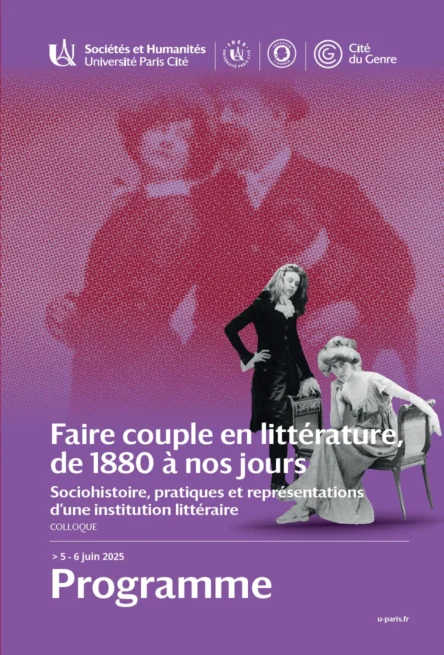 Dans le cadre du colloque « Faire couple en littérature, de 1880 à nos jours. Sociohistoire, pratiques et représentations d’une institution littéraire« , qui se tiendra les 5 et 6 juin 2025 à l’Université Paris Cité (site des Grands Moulins, salle 677C), deux membres de l’ERITA prendront la parole: